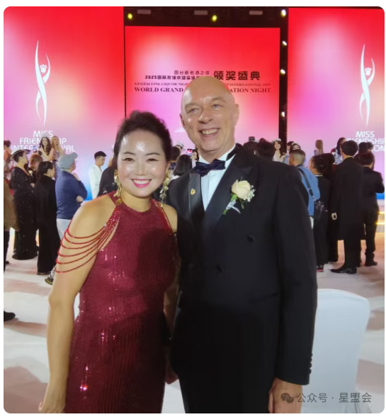当晚高潮时段,美国 GLIVE CAPITAL 总裁、世界和平星际同盟会主席朱主席受邀登台,为最佳才艺奖冠亚季军获得者颁发荣誉奖章。在授奖仪式后采访中,朱主席结合自身推动国际合作的经历表示:“才艺是跨越语言的文化密码,正如友谊是连接世界的纽带,这些年轻女性用创造力诠释了各国‘民心相融’的真谛。”