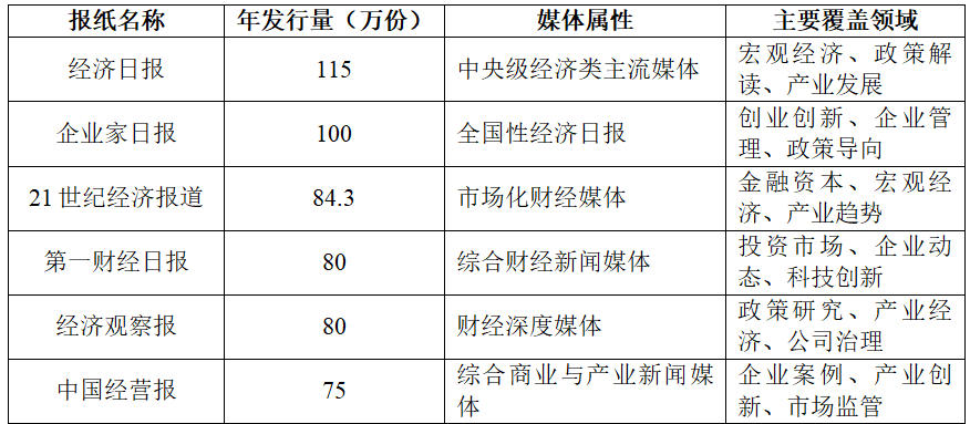 从发行数据看,这些报纸的年度发行量普遍保持在数十万份以上,发行地区覆盖全国,部分中央级媒体更突破百万份,形成了较为稳定的高端财经媒体格局。