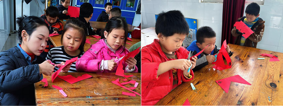 宪法知识讲解结束后,非遗剪纸环节拉开帷幕,孩子们在司法所工作人员的细心指导下,一双双巧手上下翻舞,一把把小剪刀在红纸上裁剪,纸屑片纷飞间,一幅幅蕴含法治寓意的剪纸作品逐渐成形,“宪法”“守法”“学法”“校园安全”等抽象的法律概念通过孩子们的巧手,变成了一幅幅生动有趣的剪纸画。