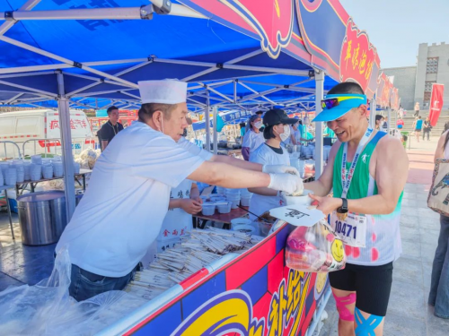 平凉这座城市不仅用青山秀水润养了跑者的双眼,更用色味俱全的崆峒美食为跑者开启了另一场“舌尖之旅”。马拉松终点崆峒古镇,各种美食应有尽有:馍筋肉烂,汤汁香浓的羊肉泡对味蕾发出第一道冲击,鲜爽与碳水共同抚慰赛后的疲惫;香酥可口的烧鸡迅速填平蛋白质的缺口;源于汉代的“红牛”更是以软嫩弹牙的口感征服跑者的肠胃。崆峒美食承载着岁月的痕迹、地域的风情,给跑者一次性带来了多重美食享受;再收获一块匠心独具的奖牌,舌尖与脚步共同起舞,多维度感受崆峒的美好。