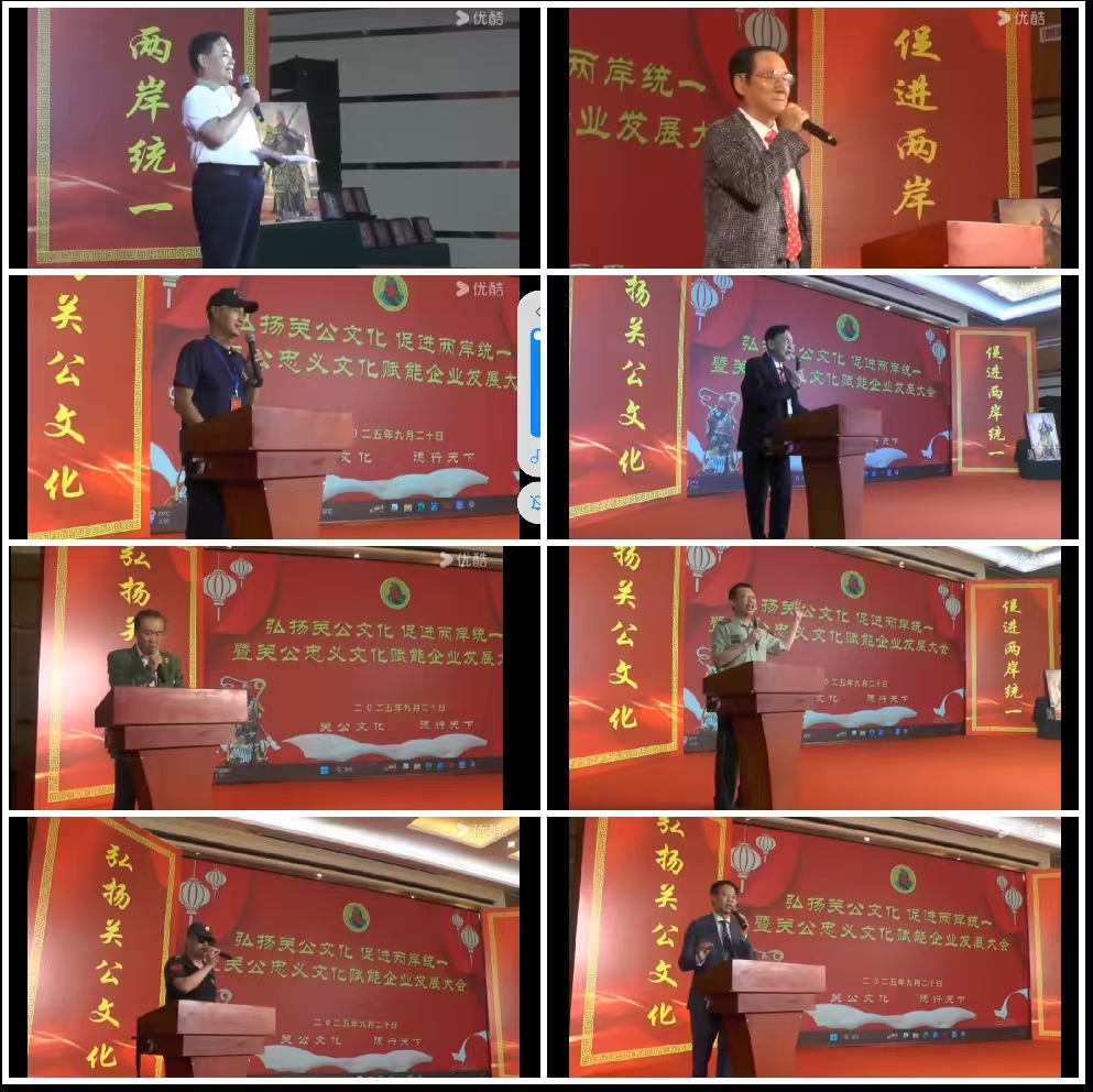 马胜利副主席回顾了关公文化的历史影响力,强调传承价值;张闯执行会长表达了推动关公文化发展的决心;原武警126师副政委赵燕青阐述了关公文化中的正义与勇敢精神在当代仍具引领作用;陈政峰会长分享了海外推广经验和关公文化凝聚华人华侨的力量。
