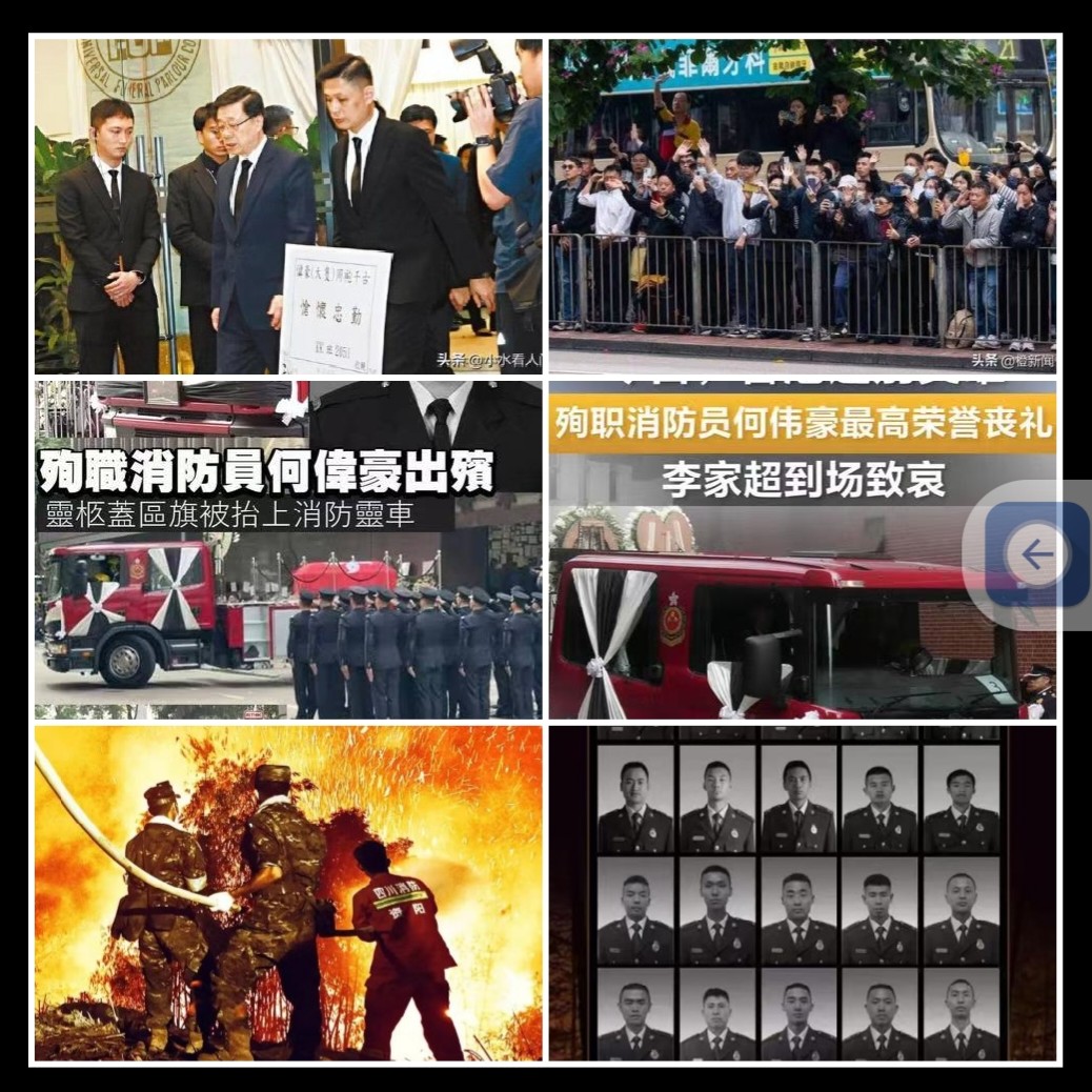 前段时间,香港为殉职消防员何伟豪举行最高荣誉丧礼,行政长官李家超参加,灵车为消防车,灵柩覆盖香港区旗,许多香港市民沿街送英雄,直播视频传遍网络,感动全球无数心。